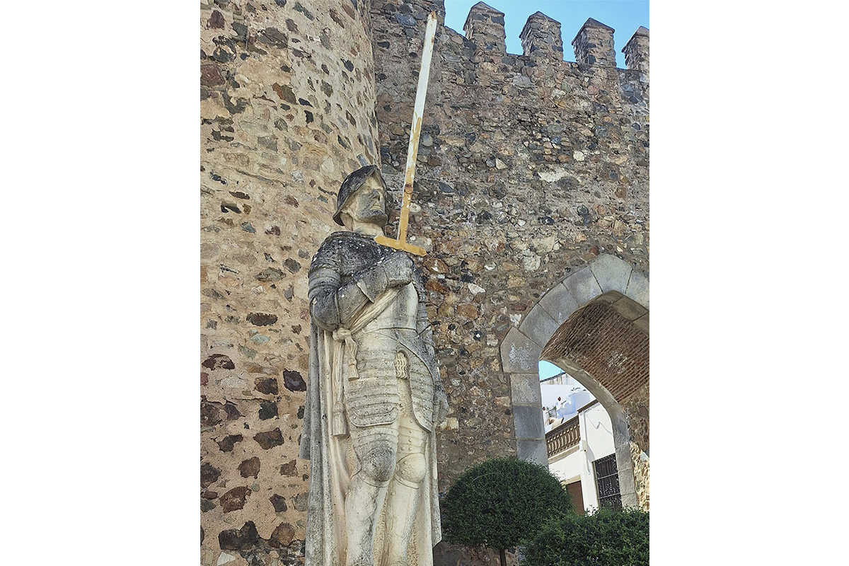 Estatua de H. de Soto en Jerez de los Caballeros, su cuna, aunque otros opinan que era de Barcarrota (Badajoz)