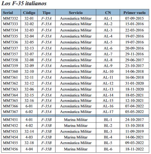De hecho, los 2 primeros entregados fueron enviados casi de inmediato a Beaufort MCAS (Marine Corps Air Station), en Carolina del Sur, para ser incluidos en el programa de entrenamiento conjunto desarrollado con el US Marine Corps (usuario de la versión STOVL). Ese par de aviones regresó a Italia en diciembre de 2022. El tercero se entregó en junio de 2021 y el cuarto en noviembre de 2022. En estas condiciones, la IOC de los aviones embarcados debería alcanzarse en 2024. Actualmente, la Fuerza Aérea tiene 17 F-35A y 2 F-35B en servicio, mientras que la Marina posee 4 F-35B.