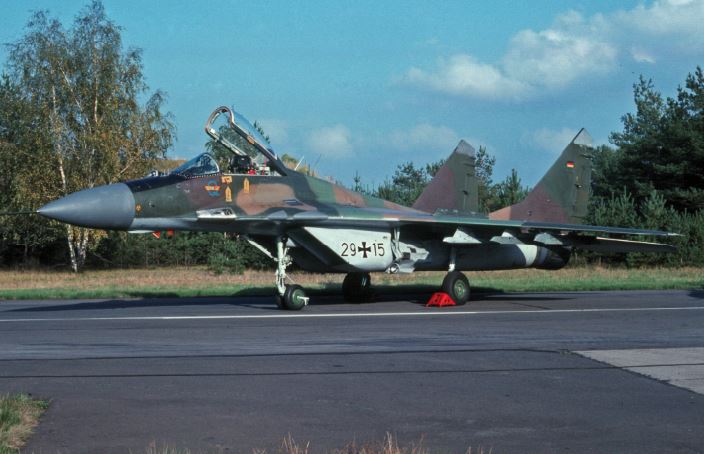 En la antigua Fuerza Aérea de Alemania del Este los Fulcrum estaban asignados al JG-3 y fueron reasignados al Ala de Ensayos y Evaluación MiG-29 en la Luftwaffe. Un par de monoplazas y 2 biplazas se transfirieron a Manching para un programa de pruebas a manos del Centro de Ensayos y Evaluación (WTD 61), de las Fuerzas Armadas germanas y otros 4 monoplazas participaron en una serie de vuelos de entrenamiento y de DACT (Dissimilar Air Combat Training) en Wittmund en marzo de 1991, sede de los F-4F Phantom ICE (Improved Combat Efficiency) de eficiencia de combate mejorada del JG71 Richthofen.