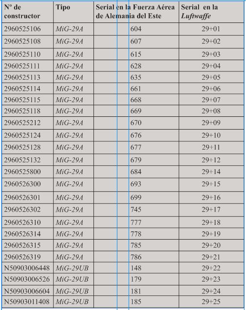 Como ya describimos, la Fuerza Aérea de Polonia recibió múltiples lotes de MiG-29. En esta tabla se ofrece una descripción general de las entregas .