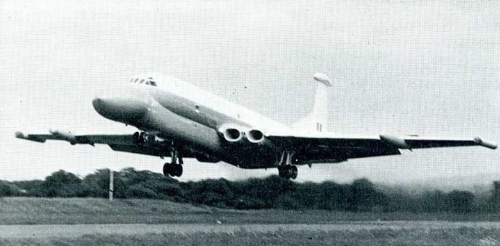 foto: Momento del despegue del BAc Nimrod AEW Mk.3 XZ-286 para realizar su primer vuelo.