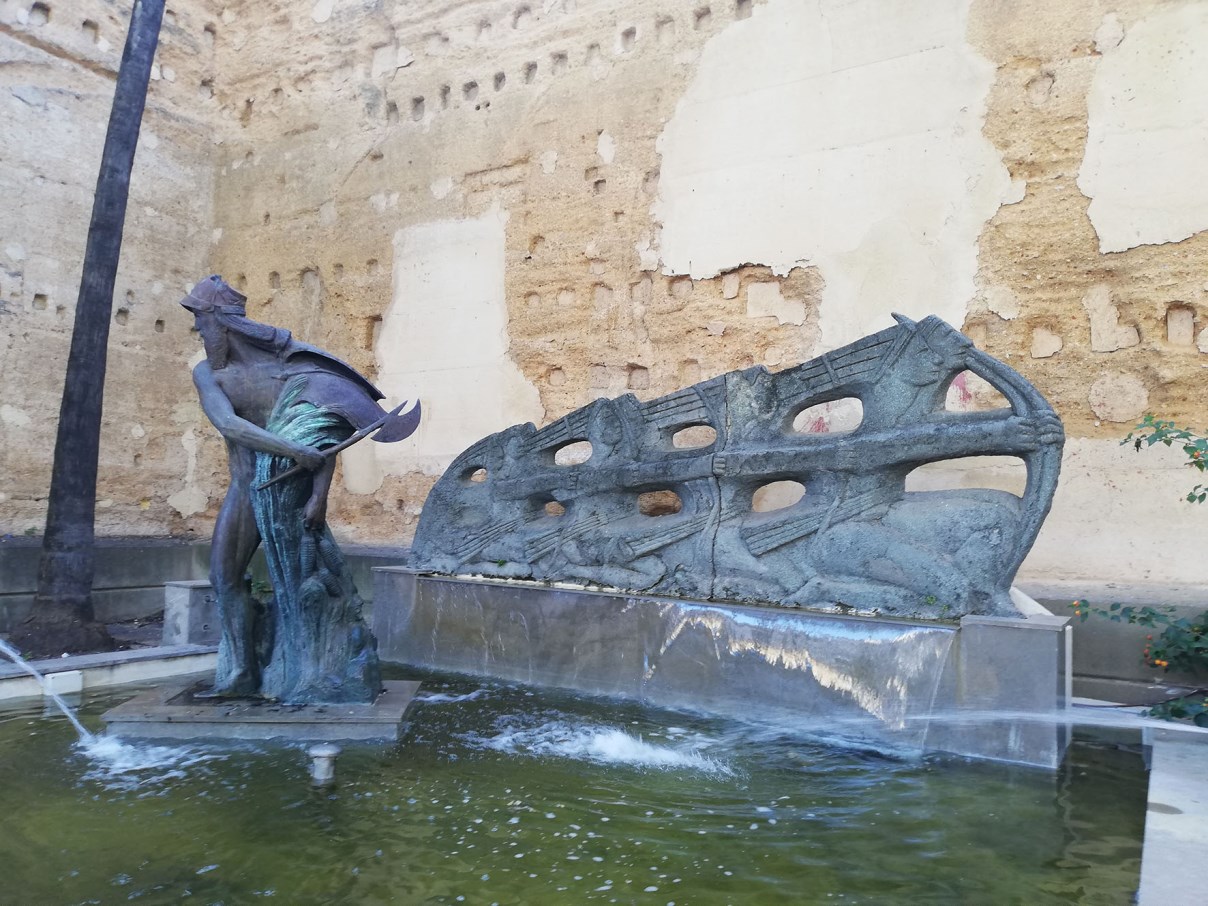 Escultura de Álvar Núñez Cabeza de Vaca en su cuna, Jerez de la Frontera (Cádiz)