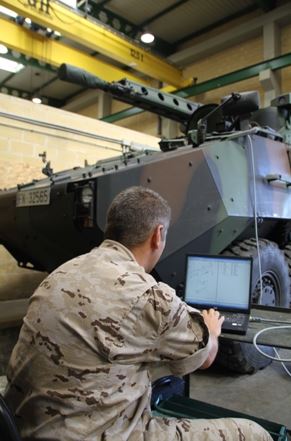 Foto: La moderna tecnología de los 8x8 Mowag “Piraña IIIC” permite chequear automáticamente parte de sus sistemas, lo que facilita mucho las tareas de mantenimiento (foto del autor).