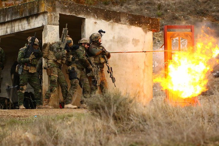 Efectivamente, estamos empeñados, completando la oferta de cursos -dos para montaña y dos para OEs- de especialización, en incluir otros más cortos que creemos necesarios para tratar de paliar desde la enseñanza reglada, ciertas necesidades de las unidades. Necesidades que nacen de la evolución constante de los procedimientos en zona de operaciones y en territorio nacional. Es el caso del TEO, cuya tercera edición se ha terminado estos días. En este momento creo que nos podemos sentir orgullosos porque es la primera vez que lo hemos desarrollado de forma exclusivamente nacional. Hasta ahora se contaba con profesores o medios cedidos por Organización del Tratado del Atlántico Norte (OTAN), poniendo la EMMOE exclusivamente el escenario. Creo que ya podemos decir que lo podemos desarrollar solos a nivel nacional.