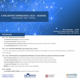 El próximo lunes, 16 de diciembre, a las 10.30 horas, en la Residencia Colegio Infanta María Teresa (C/ Príncipe de Vergara 248 -MADRID-) tendrá lugar el II Encuentro Empresarial CECO - AESMIDE (Asociación de Empresas Contratistas con las Administraciones Públicas).