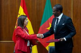 La ministra de Defensa, Margarita Robles, ha recibido al ministro de Defensa de la República de Camerún, Joseph Beti Assomo, en la sede del Departamento, donde se ha firmado un Acuerdo Marco de Cooperación en materia de defensa entre ambos países.