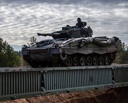 En el marco del refuerzo de capacidades de la fuerza del Ejército de Tierra en Letonia, en apoyo de la misión de la OTAN, se ha desplegado un puente plegable de campaña de la firma alemana Dornier.