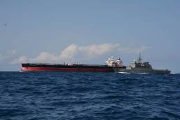 Desde el Golfo de Guinea nos llegan imágenes del patrullero de la Armada española “Serviola” escoltando al gigantesco petrolero “Monte Urbasa”, también construido en España por Navantia.