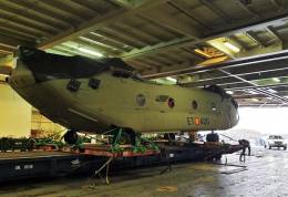 Procedente de Estados Unidos y tras un par de escalas (en Alemania con cambio de barco y en Bélgica), llegaba finalmente a las 5 de la mañana del 25 de noviembre al puerto de Santander el primer helicóptero Boeing CH-47F Chinook que operarán las Fuerzas Aeromóviles del Ejército de Tierra (FAMET).