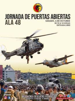 El Ala 48 ha organizado una jornada de puertas abiertas el 6 de octubre en la Base Aérea de Cuatro Vientos en la que junto a sus aeronaves de ala rotatoria se podrán ver otras históricas del Ejército del Aire, como el mítico biplano Dragon Rapide, e incluso uno de los helicópteros NH90 de última...