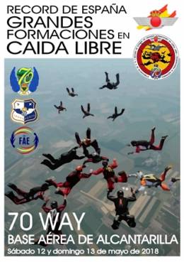 El 12 y 13 de mayo tiene lugar en la Base Aérea de Alcantarilla un gran evento aeronáutico en el que se darán cita paracaidistas civiles y militares para establecer un nuevo récord de España de grandes formaciones en caída libre, y batir así el actual de 54, establecido en 1996 en Zaragoza.