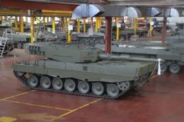 Durante una reciente visita al Parque y Centro de Mantenimiento de Sistemas Acorazados nº 1 (PCMASA 1) del Ejército de Tierra (ET) hemos podido ver varios carros de combate Leopard 2A4 ya pintados con el verde estándar que se aplica a todos los vehículos de la institución castrense española.