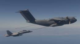 (defensa.com) El A400M de Airbus ha demostrado por primera vez su capacidad como avión de reabastecimiento en vuelo durante unas pruebas con aviones F/A-18 del Ejército del Aire español. Esta es la primera campaña de pruebas en la que se incluyen contactos húmedos (en los que se trasvasa...