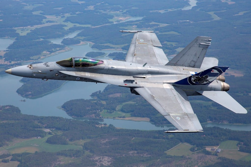 El F/A-18C de la Fuerza Aérea de Finlandia, decorado especialmente para hacer demostraciones de vuelo. (foto Ilmavoimat)