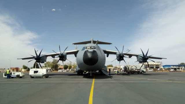 Fotografía: El A400M del Ejército del Aire en el aeropuerto de Bamako. (foto EMAD).