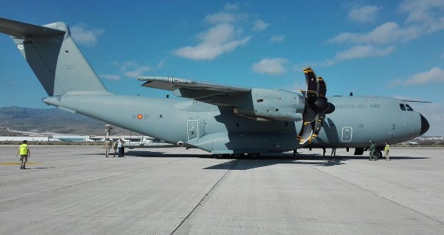 - ·El A400M del Ejército del Aire en la plataforma de Gando. Foto Ejército Aire.