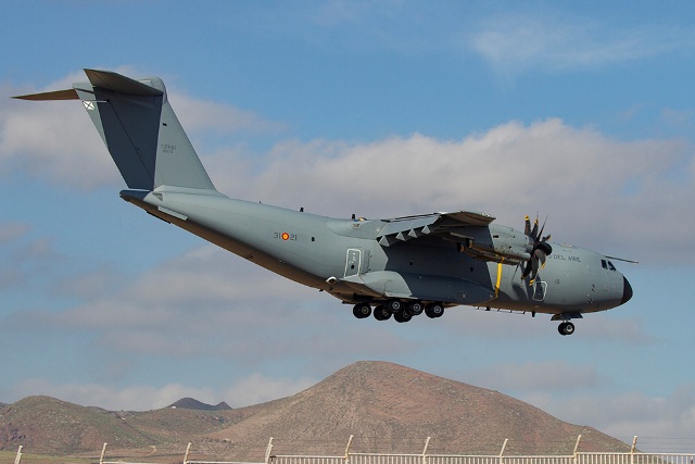 El nuevo A400M del Ejército del Aire ha realizado un largo vuelo hasta la Base Aérea de Gando (Gran Canaria) para replegar a bases de la Península material desplegado en la base insular con motivo del ejercicio DACT-2017. El aparato, que salía a primera hora de la mañana desde su base de Zaragoza, utilizando el código radio de Dumbo40, en aproximadamente tres horas de vuelo ha recorrido por primera vez los más de 2.000 kilómetros que separan esas instalaciones del Ejército del Aire en Aragón y las islas Canarias.
