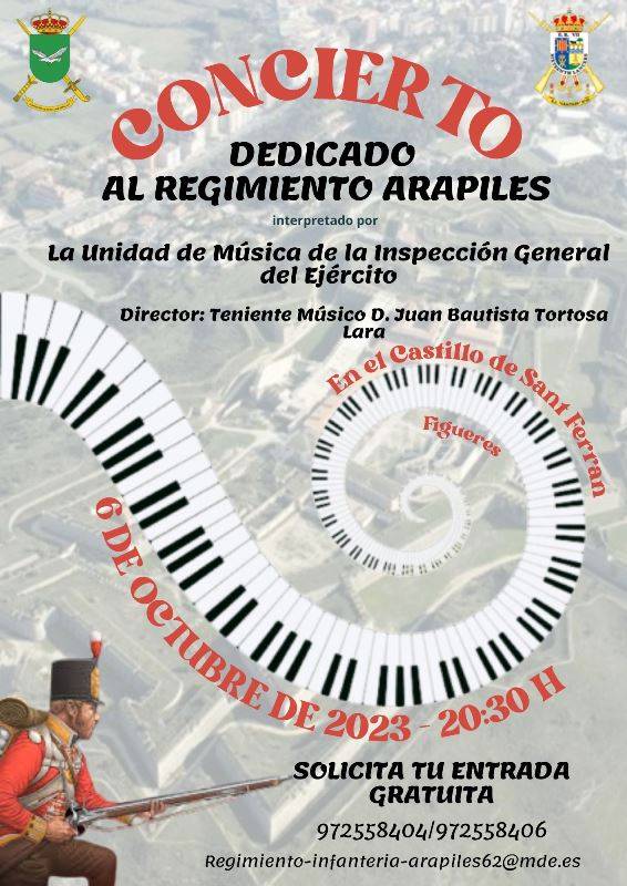 La entrada al concierto será gratuita y hasta completar aforo. Los interesados en asistir a este concierto de Música deberán ponerse en contacto al correo: regimiento-infanteria-arapiles62@et.mde.es donde le indicarán cómo hacer para obtener sus entradas. (Octavio Díez Cámara)