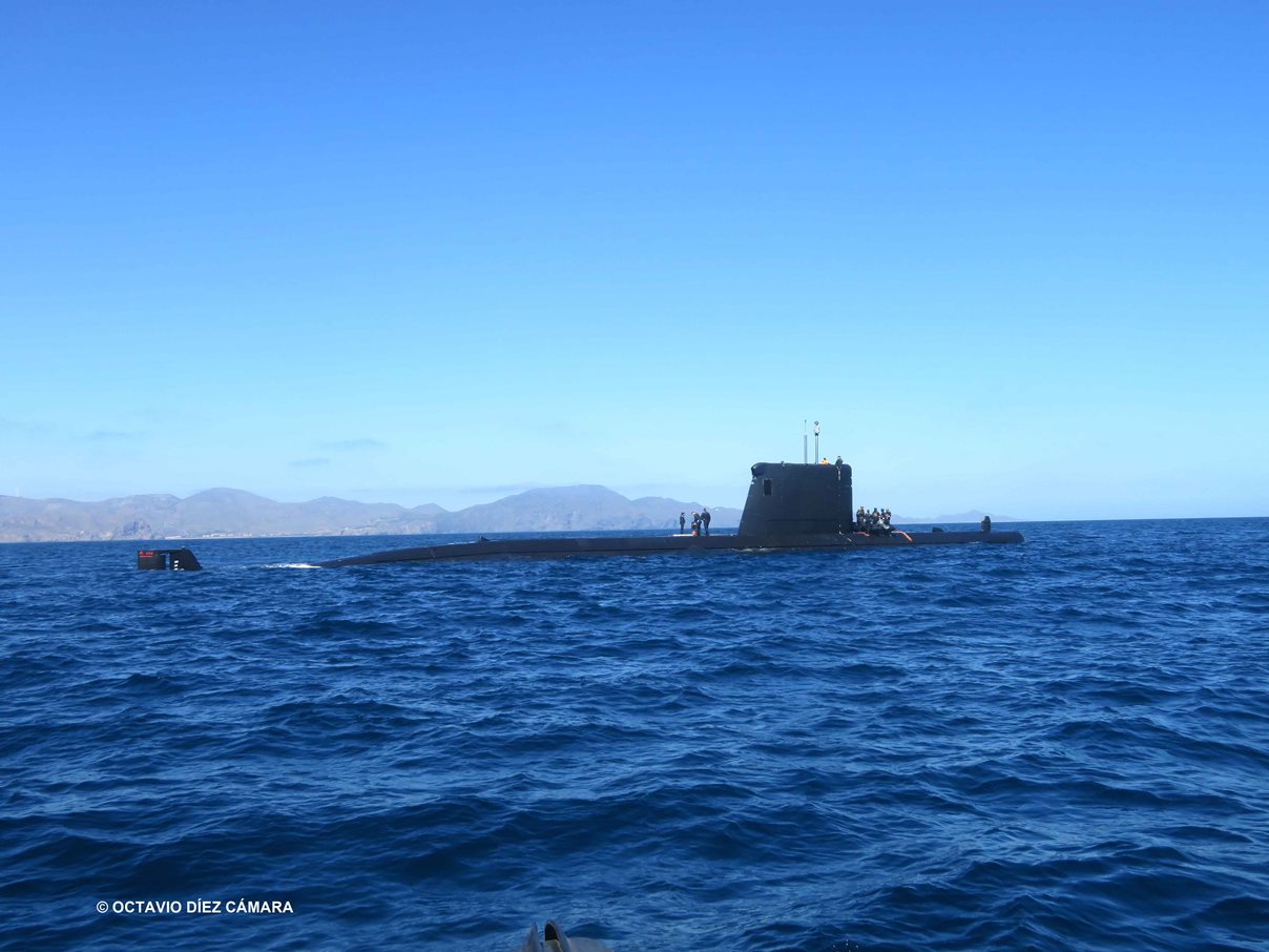 Les hemos acompañado en un tránsito desde la Estación Naval de la Algameca, al sur de la Base Naval de Cartagena, en una potente lancha impulsada por dos motores fuera borda. Con la misma se han desplazado a un área en la que se preveía realizar un adiestramiento técnico que implicaba el contacto con el sumergible, movimiento en el que a lo lejos hemos podido ver navegar también al novedoso S81 Isaac Peral que continúa con un intenso programa para alcanzar la operatividad esperada.
