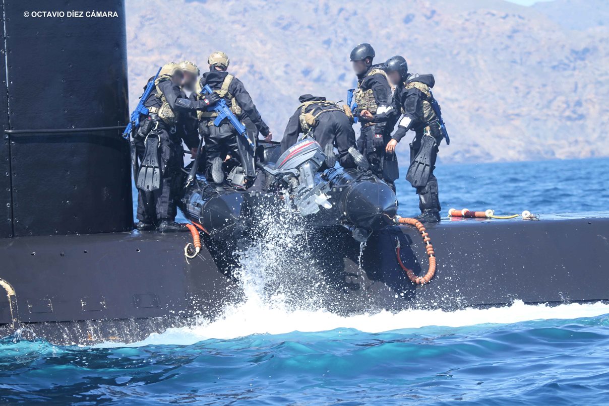 En un protocolo que se denomina cubierta húmeda, el submarino completó su salida a superficie. De esta forma, la lancha queda sobre su casco y el personal puede desembarcar e introducirse al interior por las escotillas habilitadas para ello. La Fuerza de Guerra Naval Especial trincaría la lancha al casco exterior y entonces podría iniciarse una inmersión para llevarles, de forma especialmente discreta, al lugar donde fuese necesaria su presencia.
