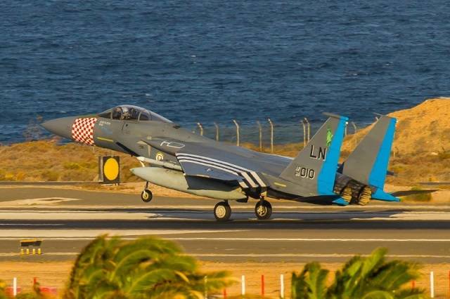 Fotografía: Uno de los F-15C de la USAFE aterrizando en la base aérea de Gando. (foto: Antonio Rodriguez Santana)