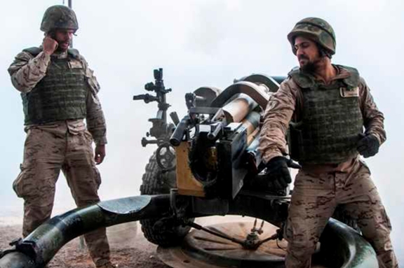 ·Tiro de artillería durante el ejercicio (Foto: José Luis Canelo/BRILEG)