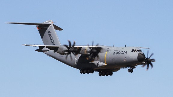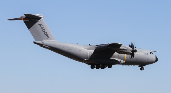 ·El A400M aterrizando. Apréciese la presencia de los “pods subalares Cobham 905E (Julio Maíz).