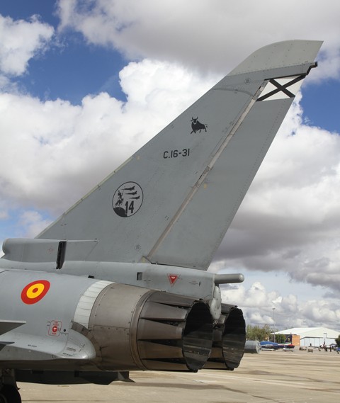 ·Detalle de la cola del primer Eurofighter con matrícula del Ala-14, donde luce la insignia de la Unidad.