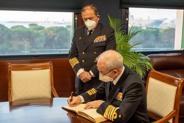 Previamente el JEMAD mantuvo una breve entrevista de trabajo en el Cuartel General de la Flota, donde fue recibido por el Almirante de la Flota, Eugenio Díaz del Río.