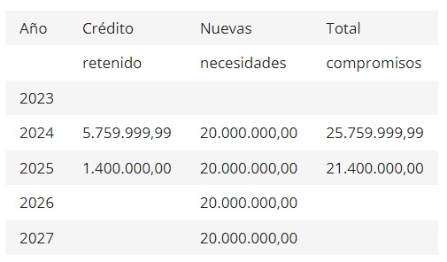 Partiendo de los nuevos compromisos a adquirir que se derivan de las necesidades expuestas, y teniendo en cuenta las retenciones de crédito ya existentes, se obtiene el siguiente cuadro resumen de necesidades totales: