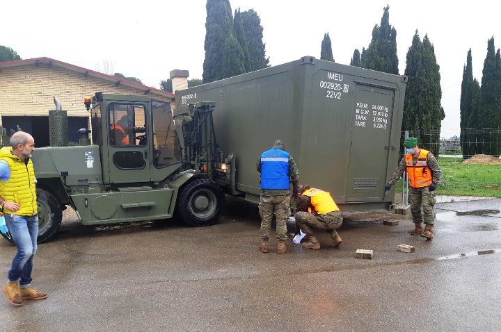 Dentro del marco de las actuaciones que la Agrupación de Apoyo Logístico 41(AALOG 41) de la Brigada Logística (BRILOG) está realizando en apoyo de la población en la lucha contra el COVID-19 se ha trasladado un contenedor ducha a la “Ciudad Residencia Sonsoles” que ATADES tiene en Aragón.