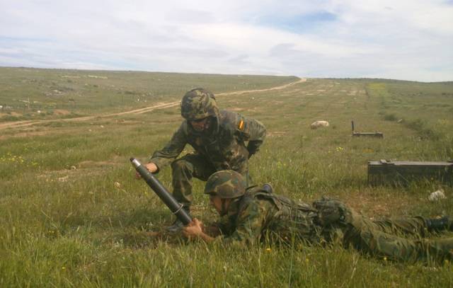 Fotografía: Ejercicio con el mortero de 60 mm. (Ejército del Aire)