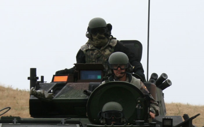 Detalle de la torre doble de este Piraña con lanzador de granadas fumígenas (Armada)