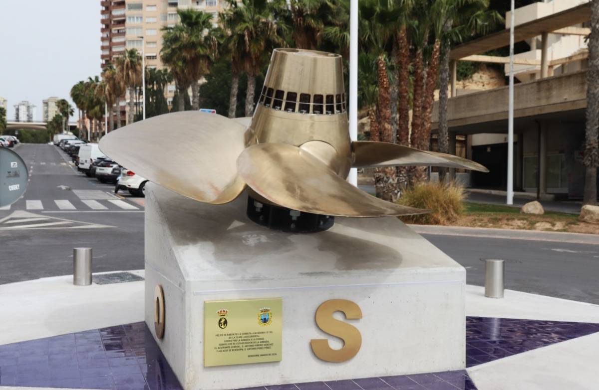 La Armada española ha estrechado sus históricos lazos con Benidorm mediante la cesión de una hélice de la antigua corbeta “Cazadora” a la ciudad mediterránea. El evento, el pasado día 21 de marzo, tuvo lugar en el punto en el que se ha instalado el propulsor, una rotonda de reciente construcción en la zona de la playa del Poniente, en la confluencia de las avenidas de Xixo y Armada Española.