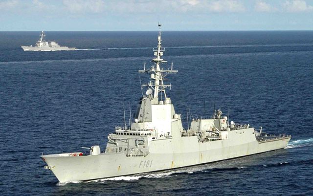 La fragata Álvaro de Bazán, que da nombre a su clase, fue construida en el astillero ferrolano de Navantia y entregada a la Armada en septiembre de 2002. Su avanzado sistema de combate Lockheed Martin AEGIS, cuyo principal sensor es el radar multifunción SPY-1D, le proporciona una gran capacidad de guerra antiaérea. Tiene su base en Ferrol y suele operar con una dotación de unos 220 hombres y mujeres, incluida su Unidad Aérea Embarcada (UNAEMB) y el Equipo Operativo (EOS) formado por infantes de Marina, que en caso de activación como buque de mando se incrementa en una veintena personas. (Julio Maíz)