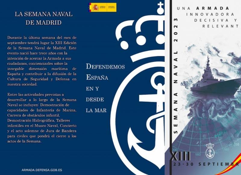 Este sábado, 23 de septiembre, se inaugura la XIII Edición de la Semana Naval de Madrid, donde está previsto que se desarrollen diversas actividades de carácter general para que los ciudadanos conozcan a la Armada de primera mano, a través del contacto directo con sus hombres y mujeres, la parte más importante de la organización.