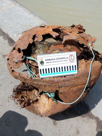 El pasado martes día 26, tras recibir el aviso del hallazgo del artefacto, el Cuartel General de la Fuerza de Acción Marítima, a través del Centro de Operaciones y Vigilancia de Acción Marítima (COVAM), destacó un equipo de buceadores, especialistas en desactivado de explosivos, encargado de neutralizar de forma segura la mina. Dicha mina de orinque había sido hallada por un pesquero mientras faenaba. Personal de seguridad del puerto de Sanlúcar de Barrameda y la Guardia Civil acordonaron la zona hasta la llegada del equipo operativo de desactivado.