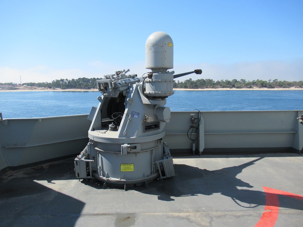 La Typhoon 25 está formada por un cañón automático Bushmaster de 25 y un bloque sensor electroóptico capaz de abatir blancos de superficie de distintos tipos dando protección al buque sobre todo contra amenazas de tipo asimétrico. En la Armada, cada uno de los BAM y de la F-105 cuentan con dos de estas torres que ahora podrían optimizarse para enfrentarse a la amenaza creciente de los UAVs sobre todo en entornos litorales o costeros. (José Mª Navarro García)
