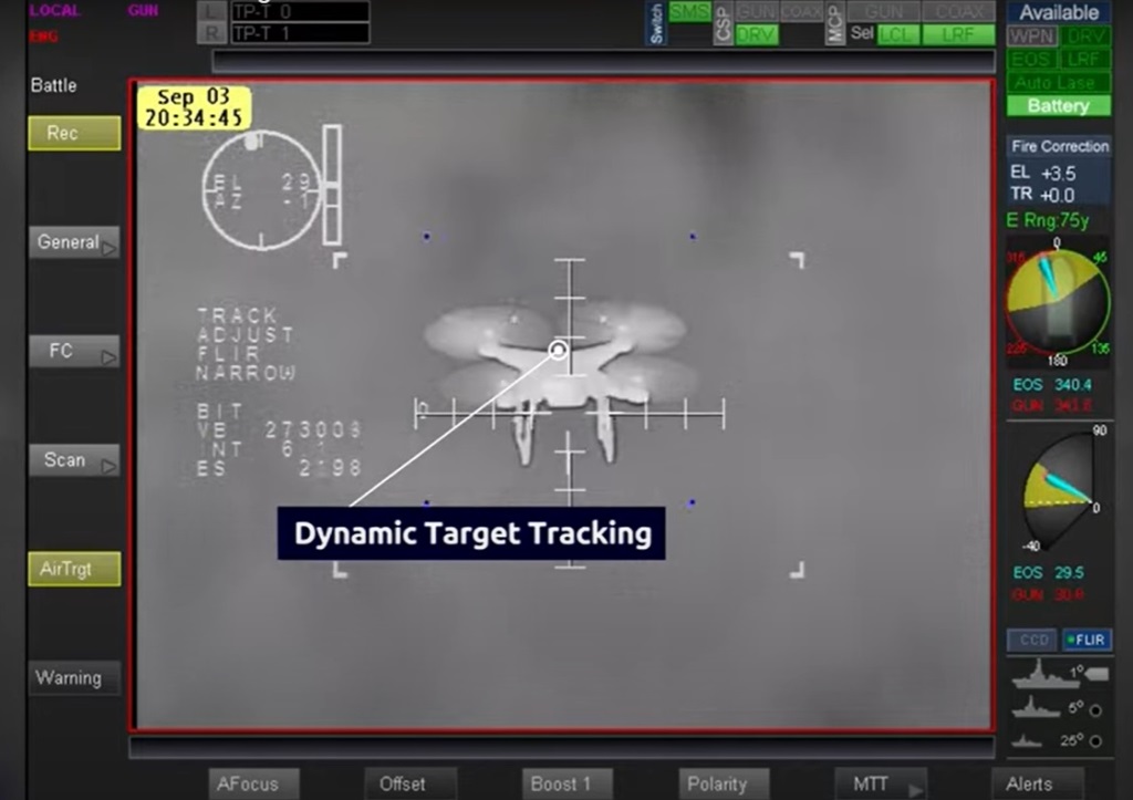 Se trata de una capacidad de la que no disponen la mayoría de las RWS del mercado y cuyo funcionamiento fue comprobado tras una serie de pruebas contra aeronaves no tripuladas en el marco de operaciones navales. Para ello el sistema de control de tiro ha incorporado capacidad de corrección automática con tecnología de inteligencia artificial y sensores multiespectrales sincronizados cuyo funcionamiento ilustra el vídeo que acompaña este texto.