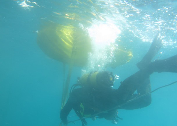 ·Los buceadores realizaron múltiples inmersiones a unos 40 metros de profundidad.