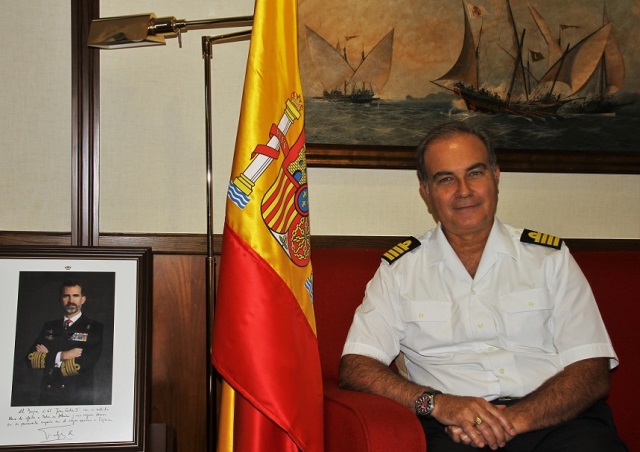 A bordo del mayor navío de la Armada, nos recibió el capitán de navío Francisco José Asensi Pérez, que desde el 27 de junio de 2018 es el Comandante de este navío, que construido por Navantia en Ferrol la pasada década entró en servicio con la Armada el 30 de septiembre de 2010. Este veterano marino, nacido en Alicante, ingresó en la ENM (Escuela Naval Militar) en 1986 recibiendo su despacho como alférez de navío el 16 de julio de 1991. Entre sus primeros destinos estuvieron los de servir en la corbeta “Cazadora”, el patrullero “Barcelo”, el buque de desembarco “Pizarro” participando en el proceso de su transferencia a la Armada por parte de la US Navy. También ha servido a bordo de las fragatas “Reina Sofía” y “Canarias”; antes de ser Comandante del patrullero “Ízaro”, con el que participó en la crisis del islote de Perejil. También mando el cazaminas “Segura” y posteriormente la moderna fragata “Méndez Núñez”.