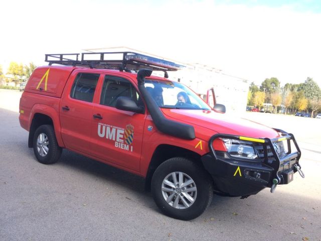 con Tecnove, nos han detallado algunas de las modificaciones aplicadas, que pasan por la instalación de diverso equipamiento y accesorios que se han construido a medida para los Amarok según los requisitos de la UME.