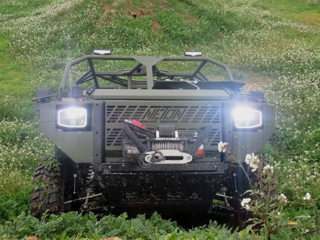 Por citar algunas características encontramos una funda de techo desmontable, múltiples emplazamientos para ametralladoras de 7,62 y 5,56 mm. así como para la munición, el sistema eléctrico de 12 y 24 voltios en el interior, las ubicaciones de los múltiples equipos de comunicaciones, el cabrestante frontal desmontable, redes protectoras en lugar de puertas a los costados, un anillo en la parte superior de la estructura para ubicar una ametralladora, así como espacio para cinco personas e incluso una camilla en caso de que fuera necesario. Se incluyen soluciones ingeniosas como la posibilidad de utilizar los ganchos para el izado como soportes para ruedas de repuesto adicionales. Ahora además de los potentes focos LED en la parte delantera, se han incluido luces militares.