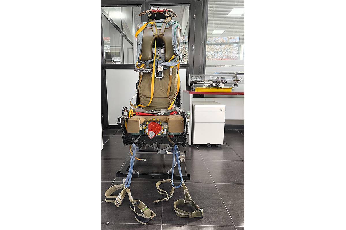 El asiento eyectable está fabricado en material muy ligero, pero a la par sumamente resistente. A simple vista, no deja de ser un asiento más. Eso sí, rodeado de “dispositivos y tubos” que llaman la atención al profano. Ahora, cuando se produce la eyección se convierte en una sofisticada obra de ingeniería. Normalmente va anclado a la aeronave utilizando un sistema de “rail” que reposa en el mamparo posterior de la cabina y no en el piso.