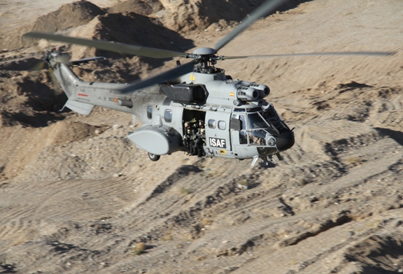 Por su parte, ASPUHEL comenzó a operar en Herat con cuatro helicópteros de transporte medio AS-532 'Cougar' a principios de 2005, a los que se sumaron en 2007 tres helicópteros de transporte pesado CH-47D 'Chinook', con los que se alternaron desde entonces y hasta finales de 2012, cuando ambos modelos pasaron a operar de forma simultánea.