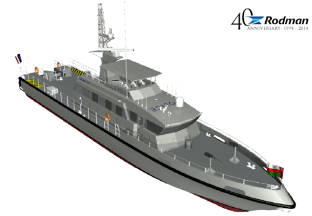 (defensa.com) El astillero Rodman Polyships ha suscrito un contrato para la construcción de cinco patrulleras interceptoras, que serán destinadas a la Royal Oman Police Coast Guard (ROPCG). El encargo del país árabe se cubrirá con un modelo diseñado según el requerimiento del cliente y tendrán la denominación de Rodman 111, y una eslora de 35,5 metros. La ejecución del pedido supondrá una importante inyección de 42 millones de euros a las cuentas de la empresa sita en Moaña (Pontevedra), y tendrá un período de ejecución de veinticuatro meses.
