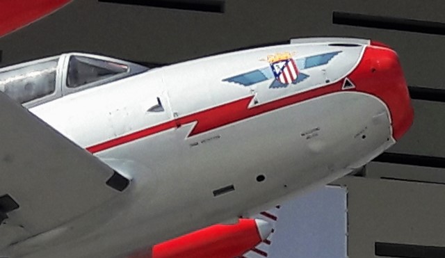 ·Detalle del escudo del Atlético-Aviación pintada en la parte delantera del HA-200D. (foto: Julio Maíz/defensa.com)