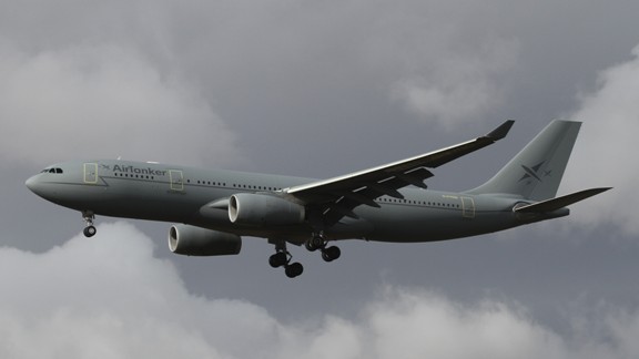 El A330-200 de Air Tanker, matriculado G-VYGG, aunque estamos ante un avión comercial su pintura gris de baja visibilidad le da una apariencia muy militar.