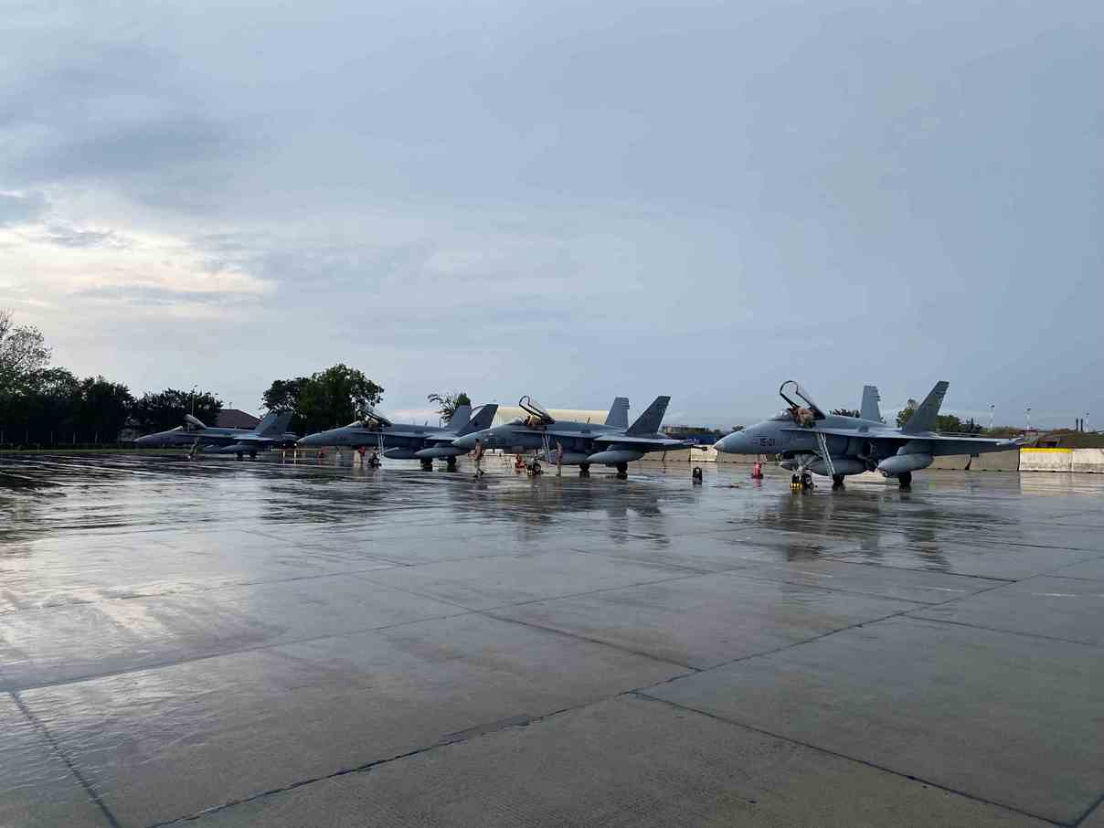 Los cuatro aviones F-18 del Ejército del Aire y del Espacio se unieron a 16 cazas polacos, estadounidenses, alemanes, daneses, neerlandeses y británicos. Además, contaron con el apoyo de aeronaves de inteligencia, vigilancia y reconocimiento (ISR, por sus siglas en inglés), y tres aeronaves de reabastecimiento aéreo.