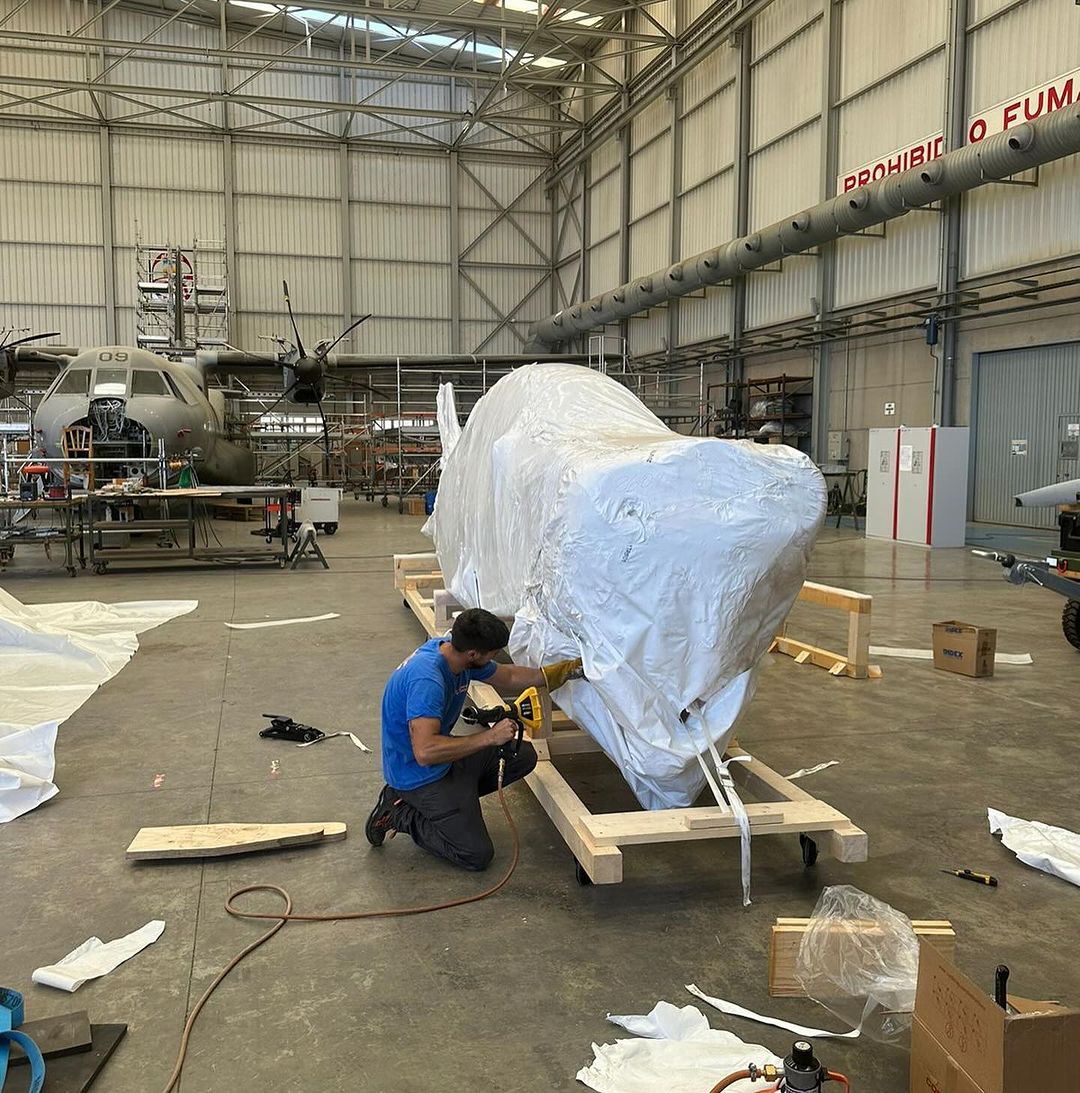 Foto 2: Preparación de un Enaer T-35C Tamiz para ser enviado a República Dominicana. (Foto: Consulado General de República Dominicana en Sevilla)